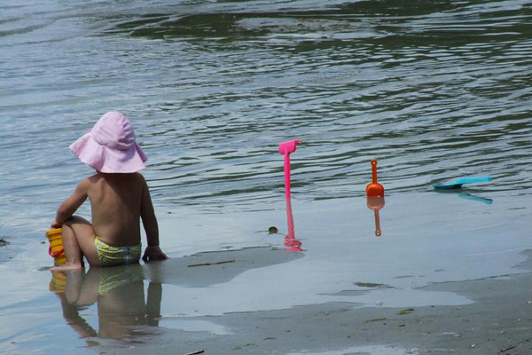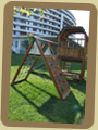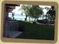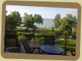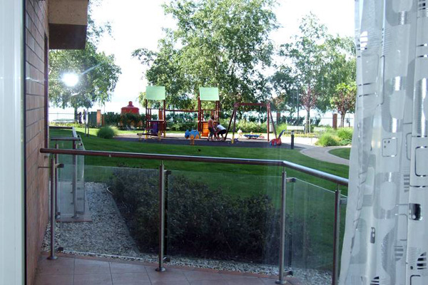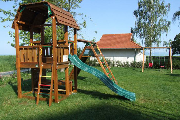 Kettő nagy teraszról a vízpartra, illetve a játszótérre