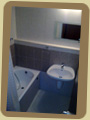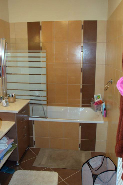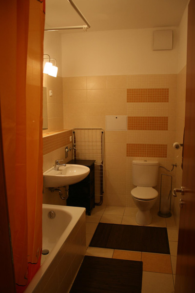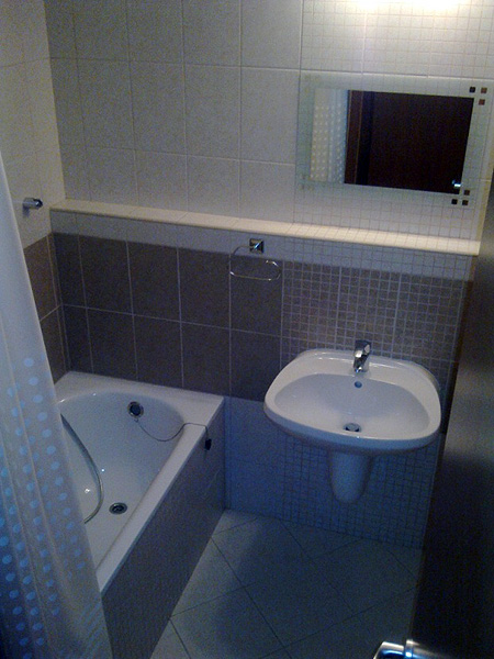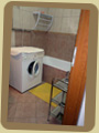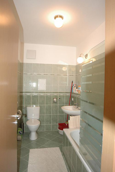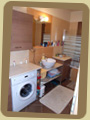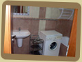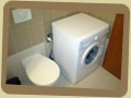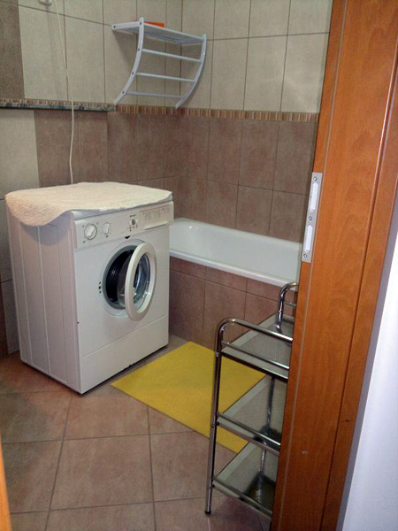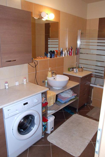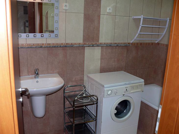 A kádas-zuhanyzós fürdőszobában mosógép is található.