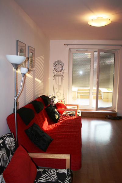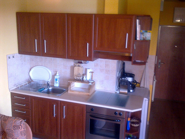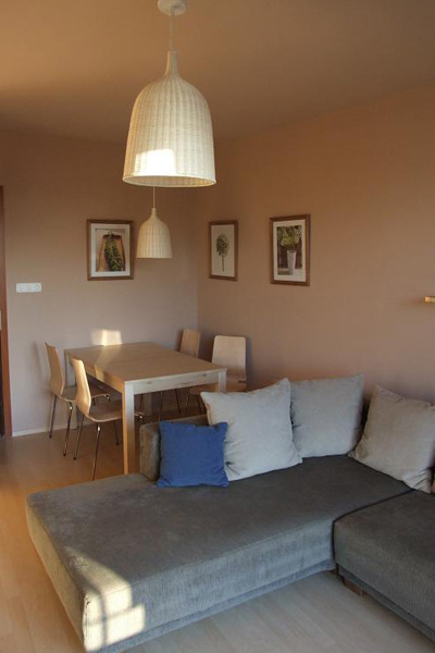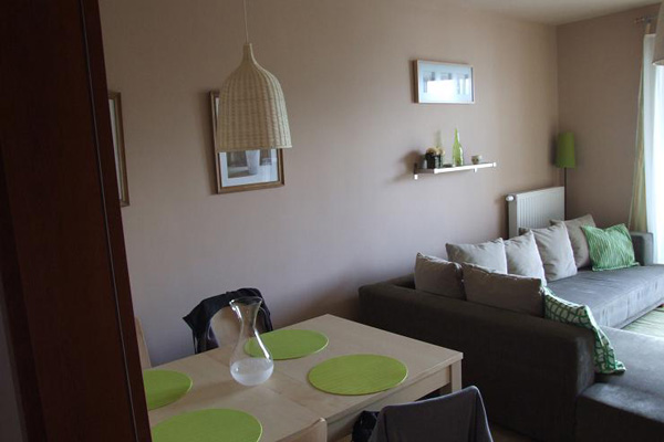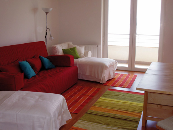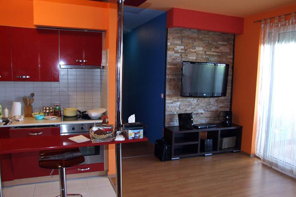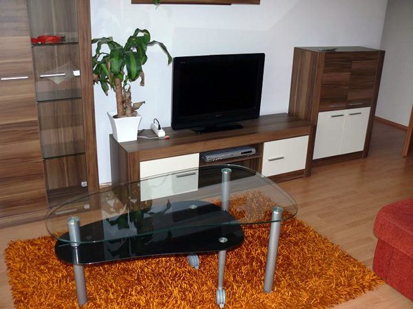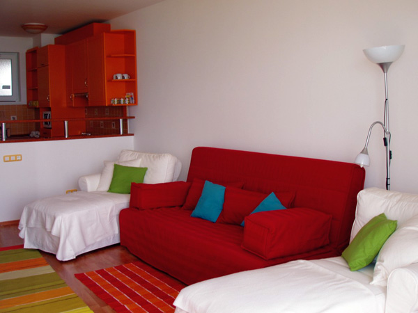 kölcsönöz az apartmannak. A nappali+étkező+konyha együttes,