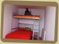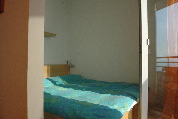 Az alábbi 5. emeleti apartmant a vidám, igazi nyaralós színvilága miatt sokan szeretik. Az emeletes ágy a gyermekes családok között teszi kedveltté (2x140cm széles fekvő felület), továbbá a nappaliban található kinyitható 160cm-es ágy is, ami kényelmes elhelyezést biztosít mindenki számára. A balatoni körpanoráma pedig teljesen zavartalan.