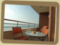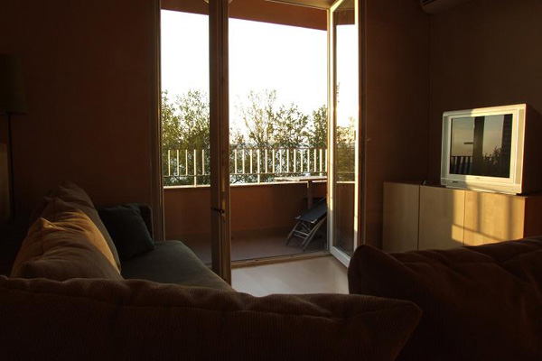 A balatoni szállás alábbi 7. emeleti kisebb méretű apartmanjának berendezése nagyon igényes és modern, a konyha és az étkező között egy átadó pult révén könnyebb a kapcsolat. A nappaliban nagy gardrobe szekrény segíti a kényelmes kipakolást, illetve egy LCD televízió is található. A teraszra kilépve a Balaton szinte a lábunk előtt hever, ami felejthetetlen emléke lesz az ide látogatóknak.