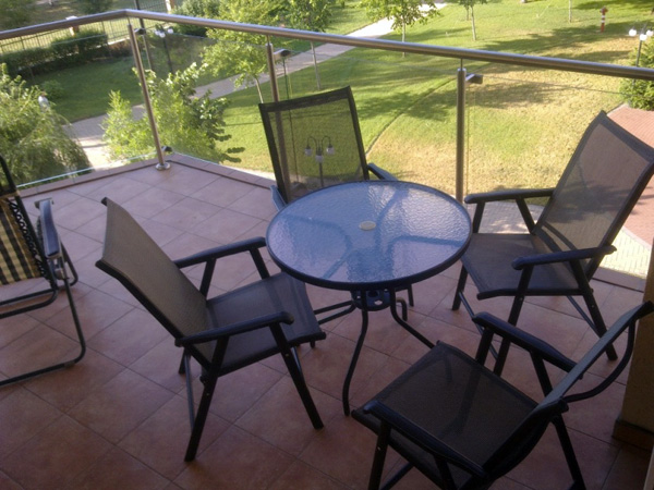 A 8. emeleti, nagyobb méretű apartman minden igényt kielégít. Bútorzata, színvilága igazi nyaraló jelleget kölcsönöz a siófoki apartmannak. A két külön hálószoba a megfelelő szeparolódást szolgálja kényelmes franciaágyas elhelyezéssel. A nagy teraszon az igényes kerti bútorokon, napozóágyon üldögélve a végtelen érzése fogja el az embert.