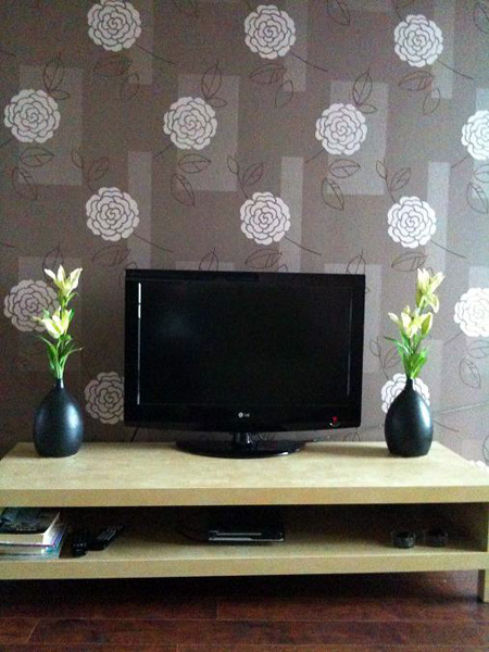a nagy méretű LCD TV az esti közös programoknak biztosít